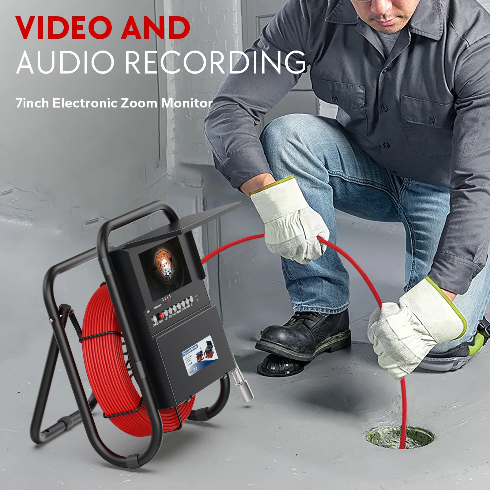 20/30/50M Sewer Camera, 7" Screen Pipeline Inspection Camera with DVR 16GB,23mm Waterproof Camera with 12 LEDs 4500mAH Battery