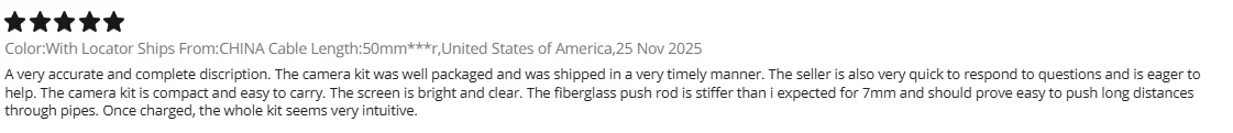 Each GAMWATER Sewer Inspection Camera set includes: 1 x HD inspection camera head, 1 x flexible inspection cable (length based on your selection), 1 x portable display (or wireless connection adapter), 1 x rechargeable battery (with long standby time), 3 x Camera Protective Cover, and 1 x user manual. We also provide a 12-month warranty and 24/7 customer support—if you encounter any issues with the product, our team will respond promptly to help you solve them.