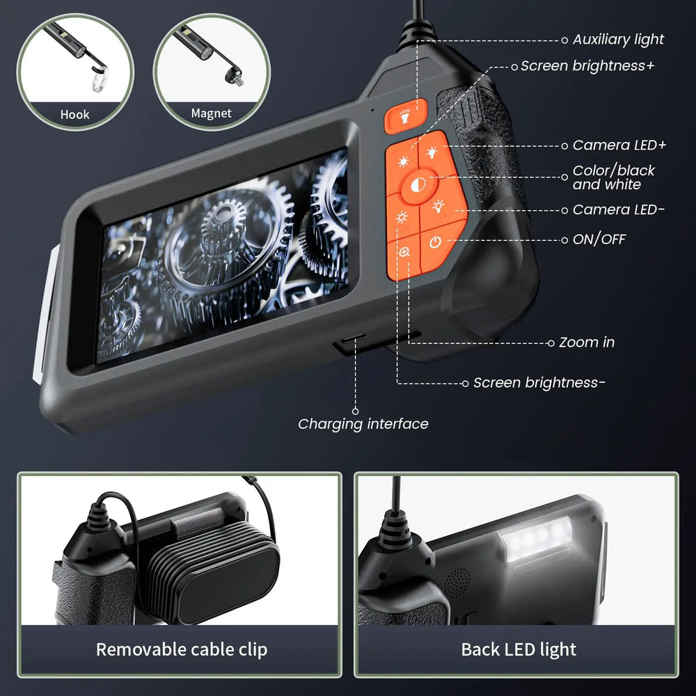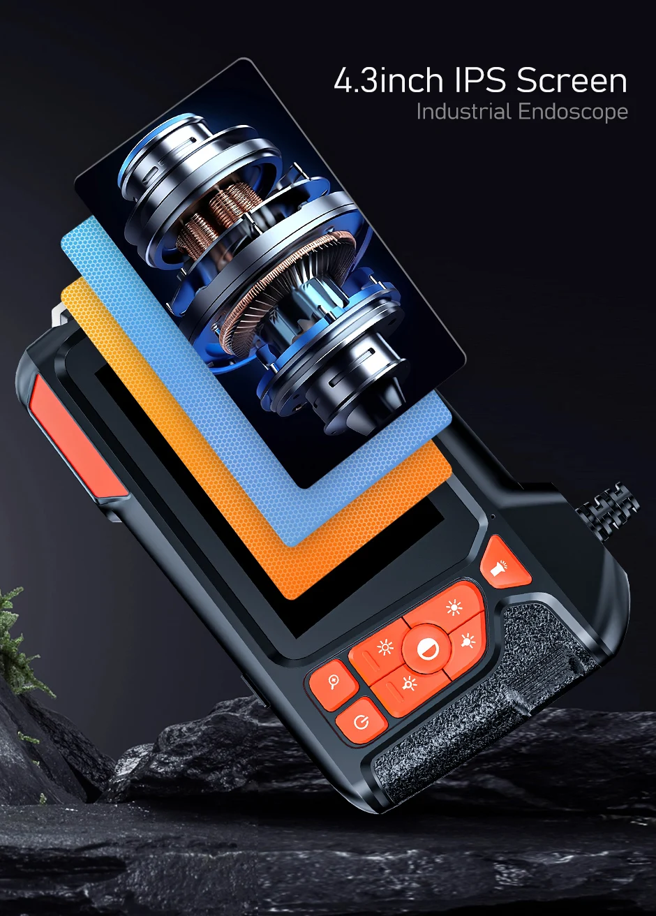 1. 4.3" HD SCREEN: Endoscope camera with light is equipped with a 4.3-inch color LCD screen that offers a remarkable 170-degree horizontal viewing angle. This wide field of vision allows you to observe a broad area with ease. Moreover, borescope camera with light provides vivid real-time images, enabling users to clearly see every detail.