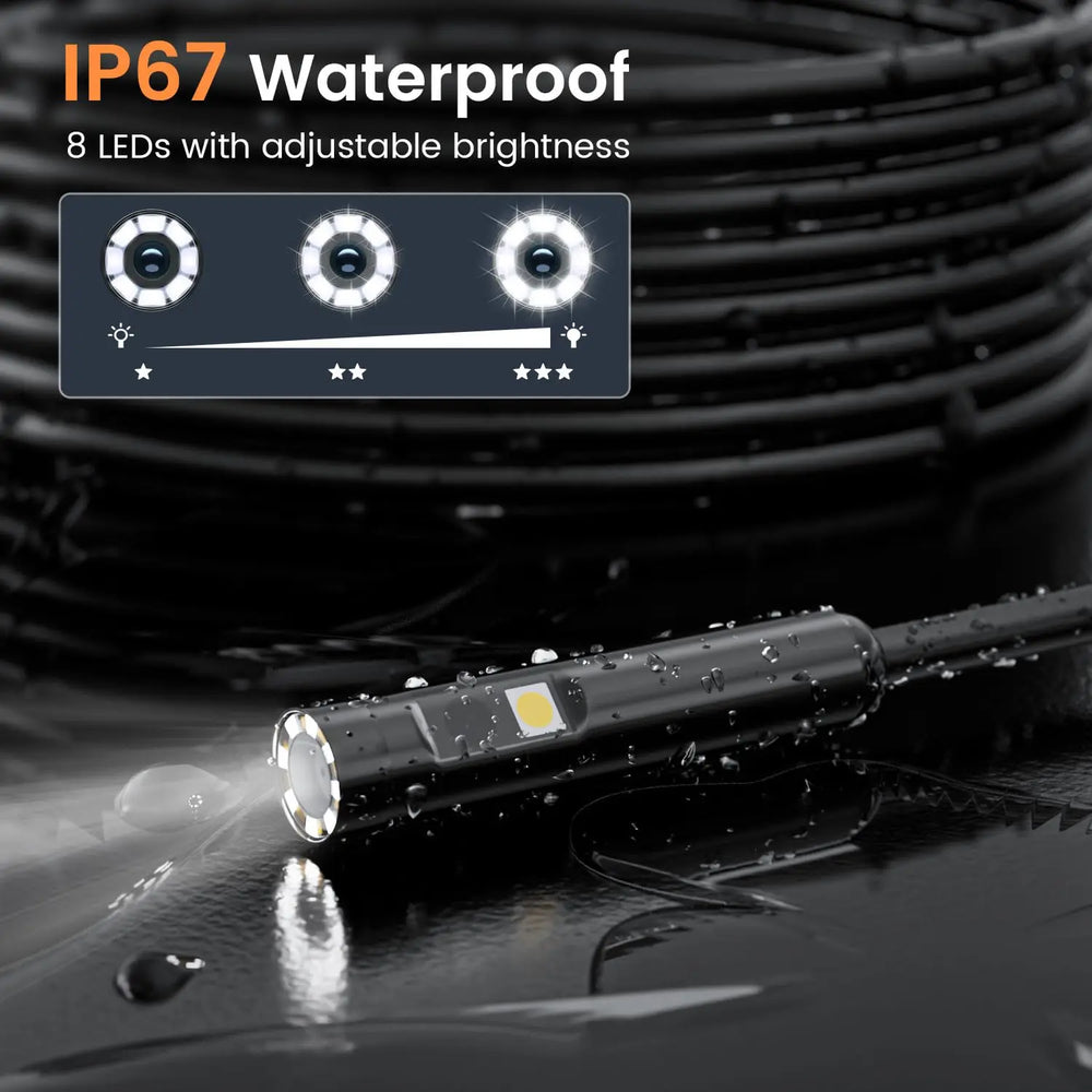 3. VERSATILE SNAKE CAMERA: Equipped with 6 adjustable LEDs, scope camera can adapt to different lighting environments. The IP67 waterproof function makes snake camera suitable for various harsh and humid environments. The 2600mAh rechargeable battery provides 3 to 4 hours of usage time, ensuring a long-lasting power supply for extended inspections.