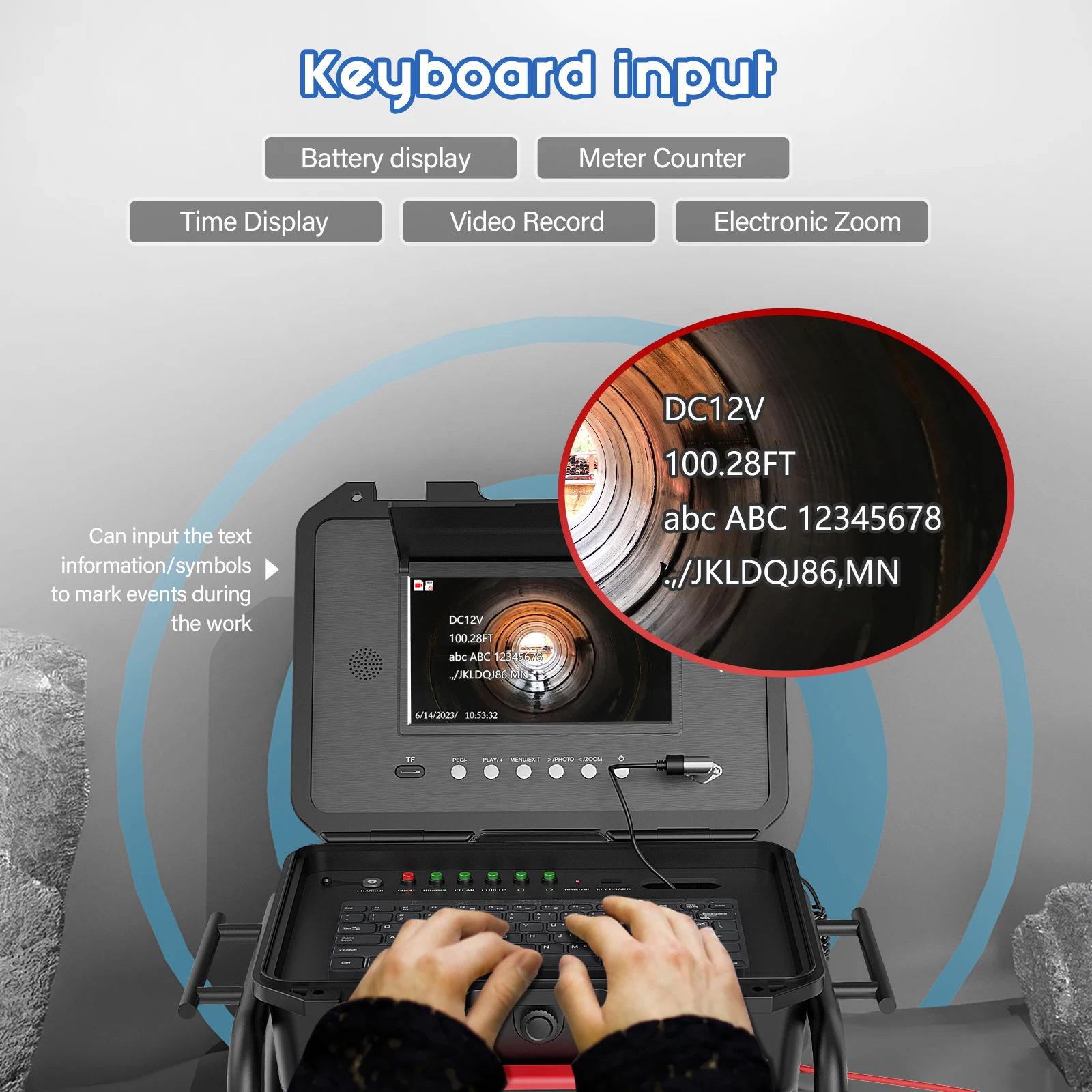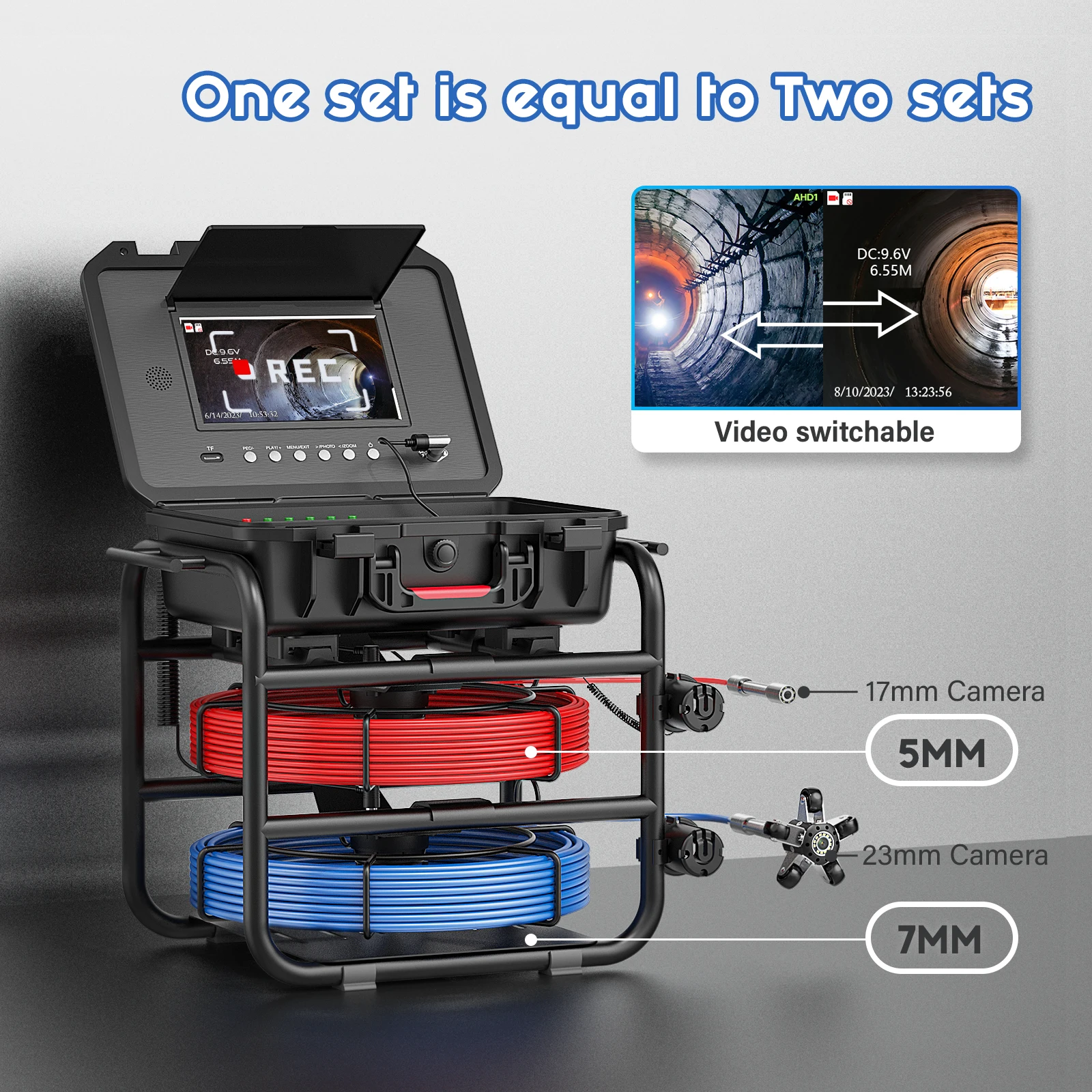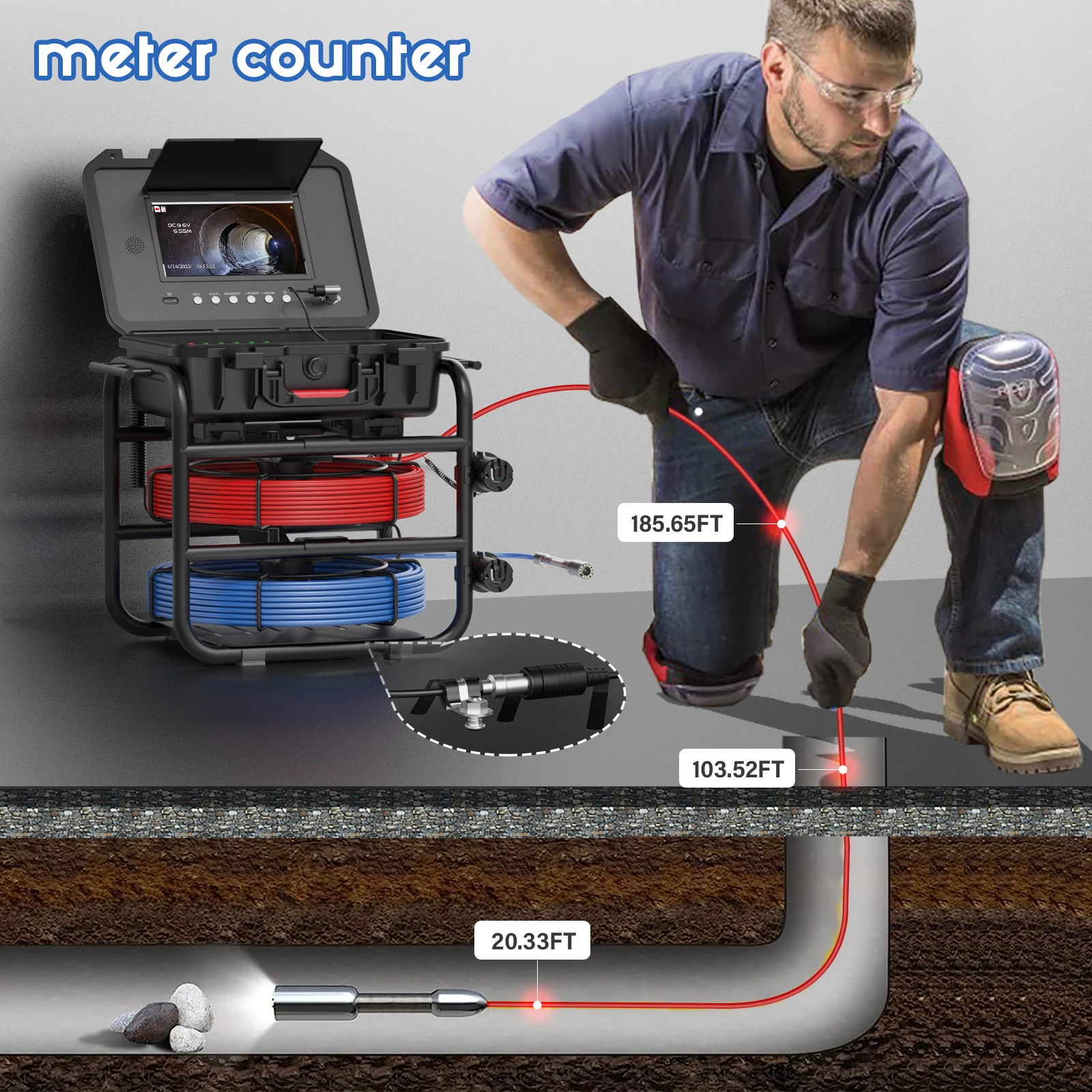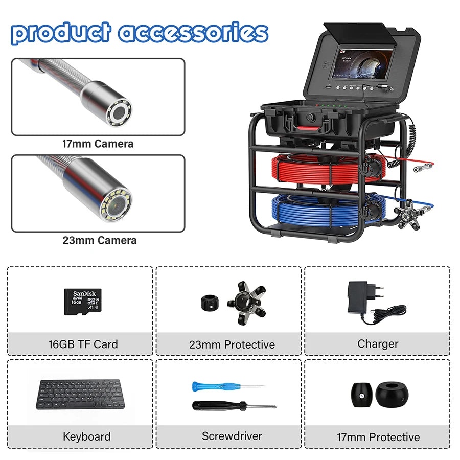 MAOTEWANG Compact Pipe Inspection Camera with Dual Cameras/Cables, With Meter Counter and Keyboard