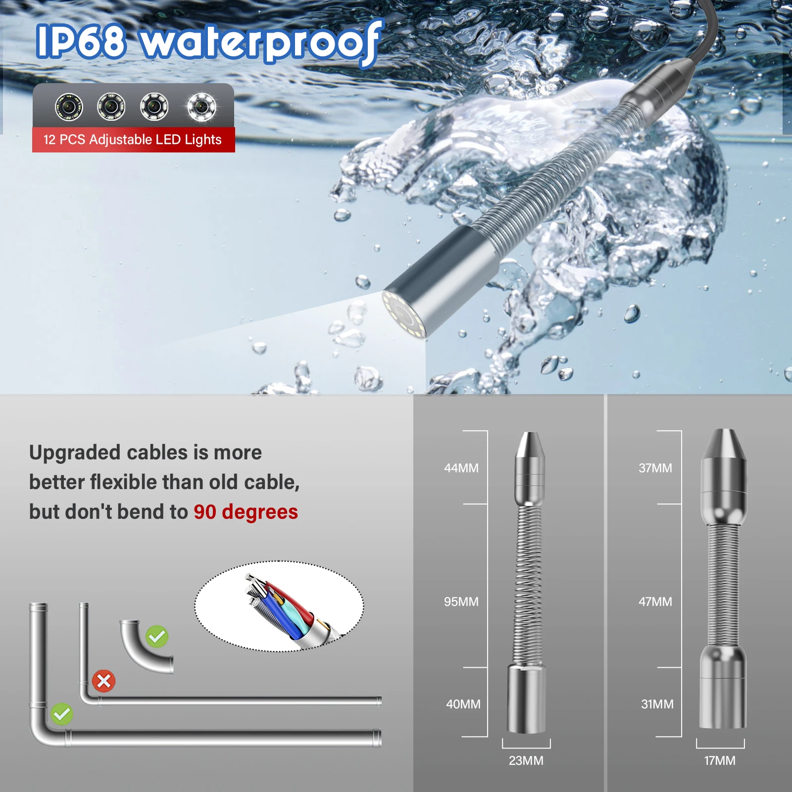 6. Camera Diameter:17mm and 23mm(With Self-Leveling 512hz)