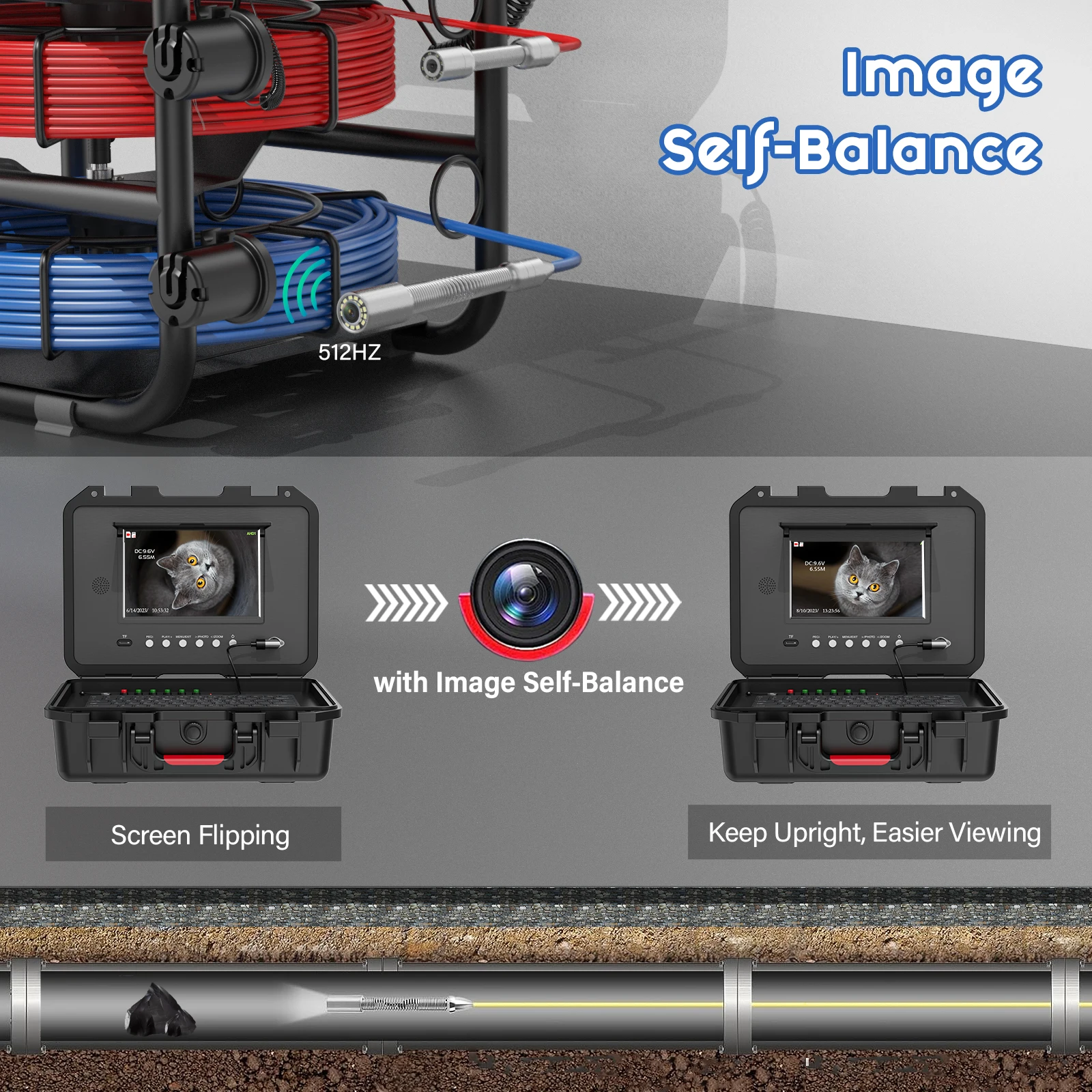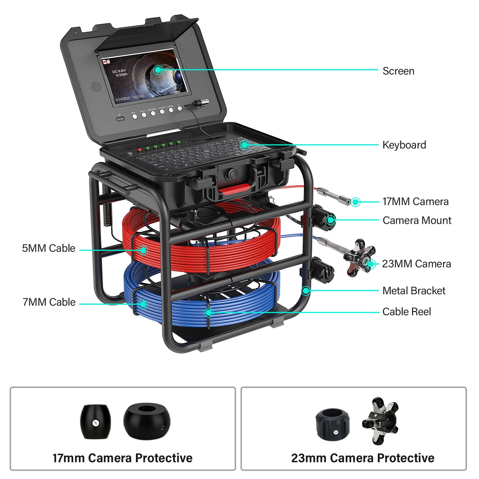 9″Sewer Pipe Inspection Camera with 17/23mm Dual Cameras/Cables and Self-Leveling 512HZ Locator Drain Industrial Endoscope