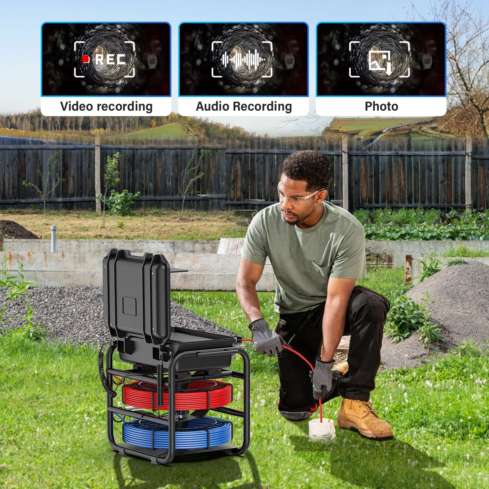 Professional Drain Pipe/Sewer Pipeline Inspection Camera is designed with a 9 inches color IPS LCD monitor with a sun-visor for outdoor inspections. The material of wire is fiberglass rod(diameter: 7MM),anti-corrosion/cold/tensile.